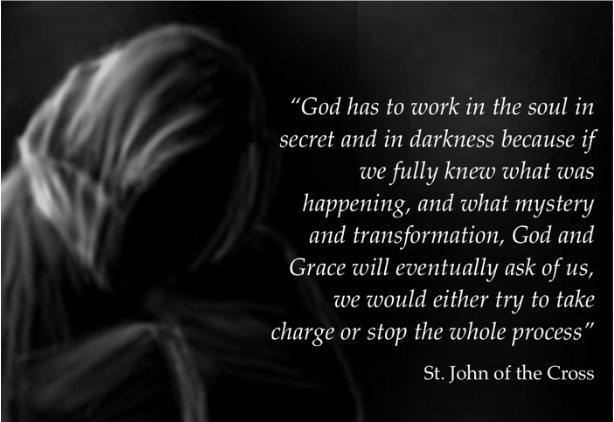 the light, the darkness is not a problem, as I know that while in darkness I am being formed in the tender embrace of Jesus.